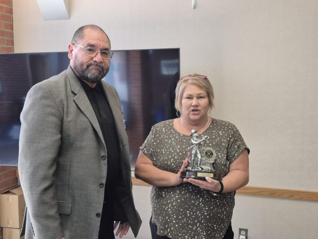 DAVID GAVE A SHORT SPEECH THANKING GOD,THE KIWANIS CLUB THE CHURCH AND HIS CO-WORKERS FOR A JOB HE LOVES